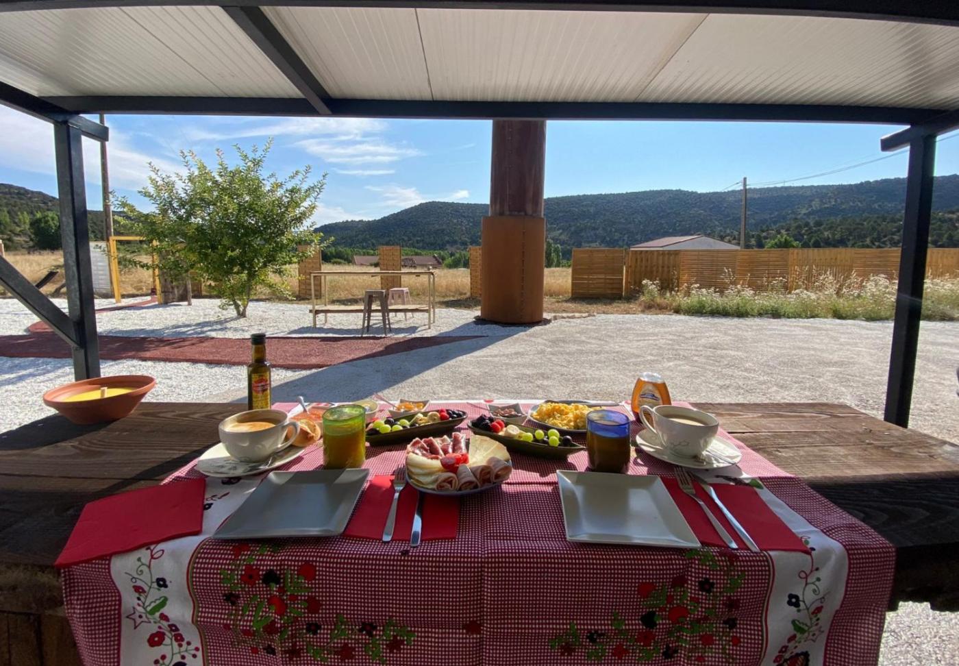 Burbuja Glamping AntiSaturno - Casas del Alto Tajo, que tiene piscina de temporada al aire libre, jardín y terraza, dispone de alojamiento en Ablanque con wifi gratis y vistas a la montaña. Este alojamiento ofrece piscina privada y parking privado gratis.