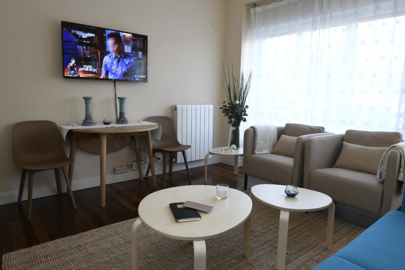 Apartamento de 1 dormitorio. This apartment features 1 living room, 1 separate bedroom and 1 bathroom with a shower and a hairdryer. Guests can make meals in the kitchen that features a stovetop, a refrigerator, a dishwasher and kitchenware. The apartment has parquet floors, a seating area with a flat-screen TV, a washing machine, a coffee machine as well as city views. The unit has 2 beds.