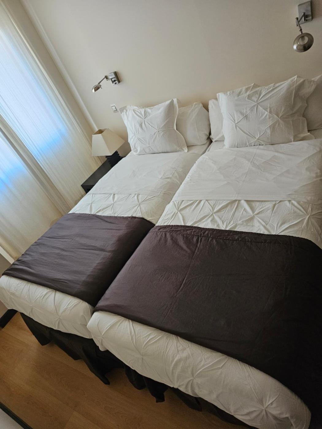 Habitación Doble con baño privado - 2 camas. The spacious twin room offers air conditioning, a wardrobe, as well as a private bathroom boasting a bath and a shower. This twin room has parquet floors, heating, a flat-screen TV and a quiet street view. The unit has 2 beds. ;