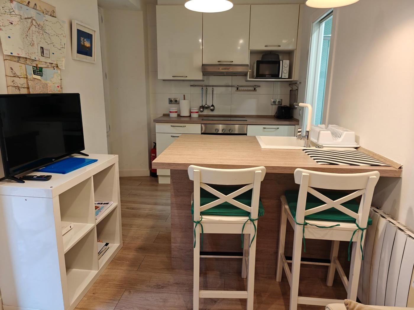 El apartamento cuenta con 1 dormitorio, 1 baño, ropa de cama, toallas, TV de pantalla plana, zona de comedor, cocina totalmente equipada y terraza con vistas a la ciudad.