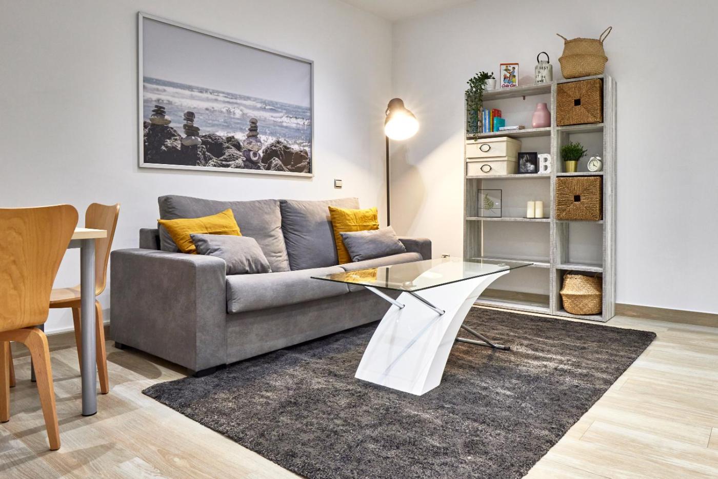 Apartamento de 1 dormitorio. Boasting a private entrance, this air-conditioned apartment features 1 living room, 1 separate bedroom and 1 bathroom with a shower and a hairdryer. A kitchen fitted with a refrigerator, kitchenware and a microwave is available for cooking and storing food. The apartment has tiled floors, a seating area with a flat-screen TV, a washing machine, a coffee machine, as well as a dining area. The unit has 2 beds.