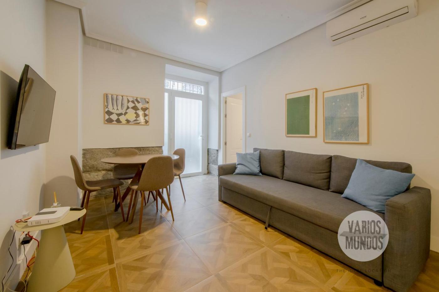 Apartamento. Este apartamento es amplio y cuenta con sala de estar, 4 dormitorios independientes y 2 baños con ducha y secador de pelo. La cocina está equipada con fogón, nevera, utensilios y horno. Este apartamento tiene aire acondicionado, zona de estar con TV, lavadora, teteracafetera, armario y sofá. La unidad tiene 5 camas.