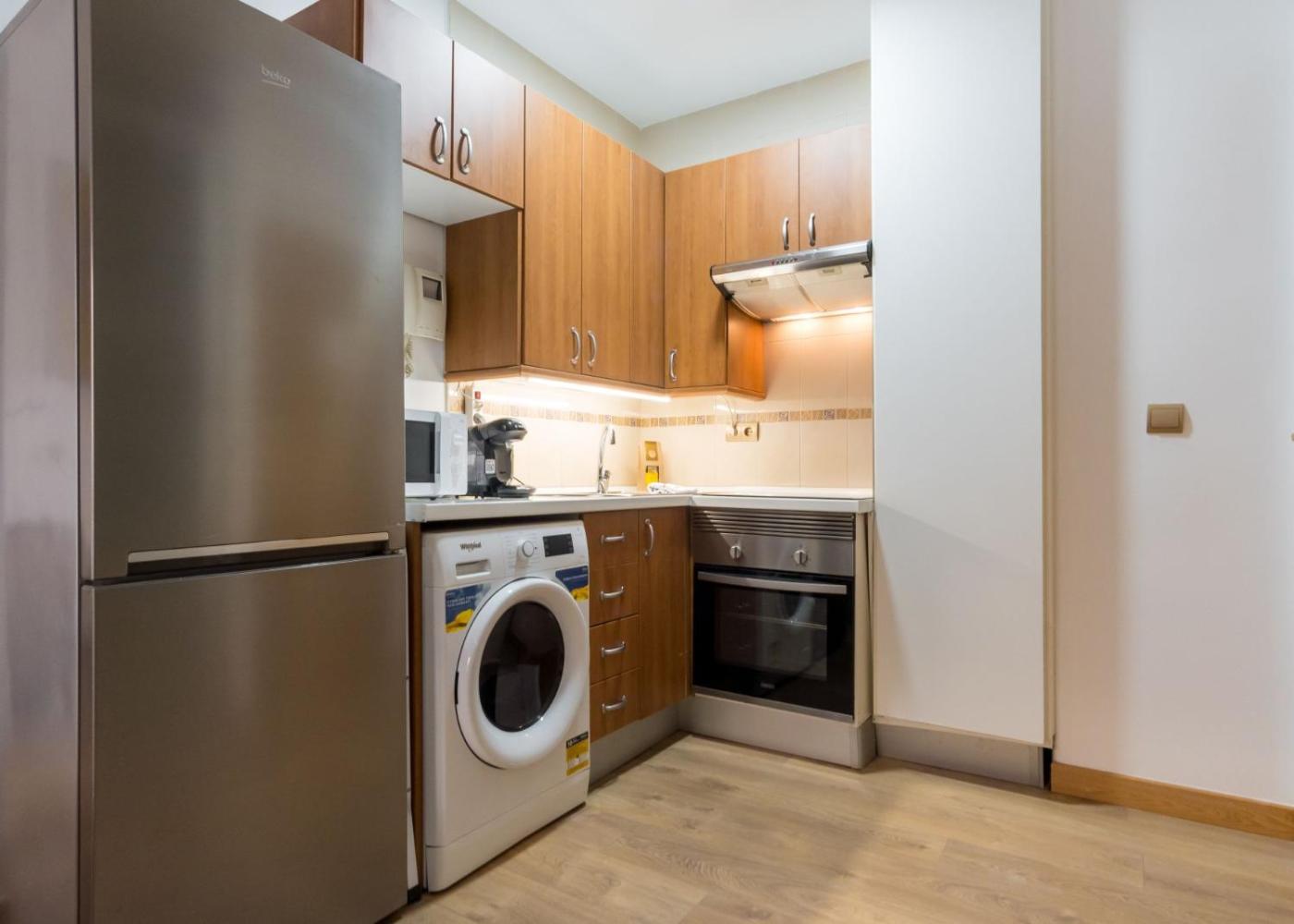 Apartamento Estudio. The air-conditioned apartment has 1 bedroom and 1 bathroom with a bath or a shower and a hairdryer. In the fully equipped kitchen, guests will find a stovetop, a refrigerator, kitchenware and an oven. Among the room amenities are a washing machine, a tea and coffee maker and a wardrobe as well as city views. The unit has 1 bed.