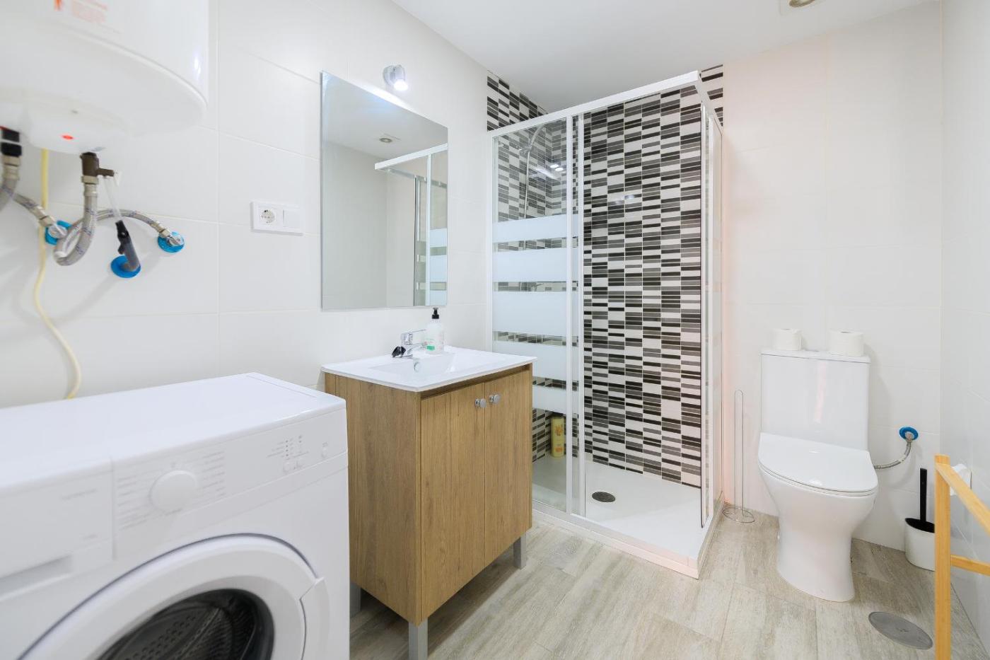 Apartamento de 1 dormitorio. This air-conditioned apartment comes with 1 living room, 1 separate bedroom and 1 bathroom with a shower. The well-fitted kitchenette has a stovetop, a refrigerator, kitchenware and an oven. The apartment features a washing machine, a tea and coffee maker, a seating area, a wardrobe, as well as a flat-screen TV. The unit has 2 beds.