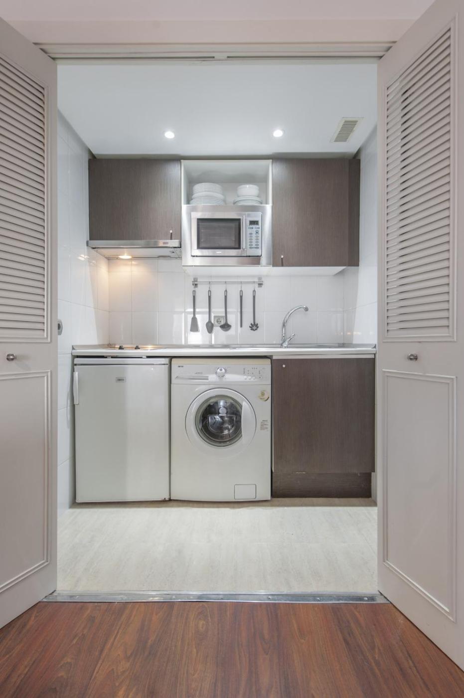 Este apartamento tiene 1 dormitorio, cocina con nevera y microondas, TV de pantalla plana, zona de estar y 1 baño con ducha.