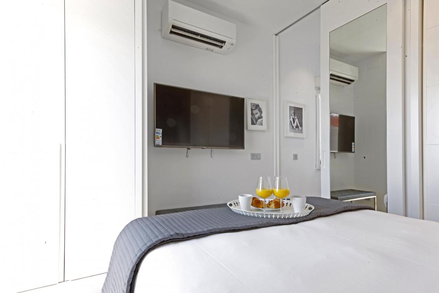 Apartamento Ático. Este apartamento cuenta con aire acondicionado, sala de estar, 1 dormitorio independiente y baño con ducha. La cocina está bien equipada con nevera, lavavajillas, utensilios y horno. El apartamento tiene suelo de parquet, zona de estar con TV de pantalla plana, lavadora, minibar, tetera y cafetera. Incluye 2 camas.