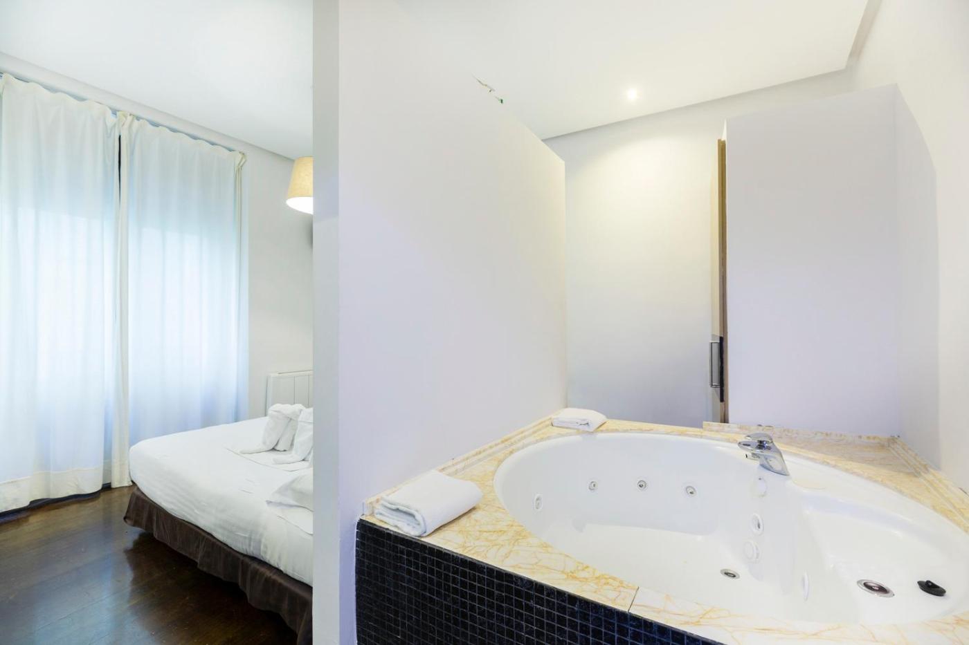 Habitación con cama grande y bañera de hidromasaje. Esta habitación doble cuenta con bañera de hidromasaje. Habitación doble con aire acondicionado, minibar, balcón con vistas a la ciudad y baño privado con ducha. Incluye 1 cama. ;