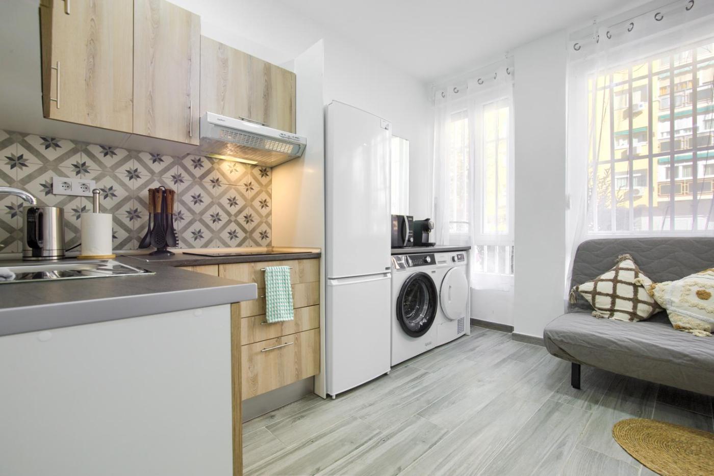 Apartamento de 3 dormitorios. Featuring a private entrance, this air-conditioned apartment consists of 1 living room, 3 separate bedrooms and 1 bathroom with a shower. Meals can be prepared in the kitchenette, which is equipped with a refrigerator, kitchenware, an oven and a microwave. The apartment features parquet floors, a seating area with a flat-screen TV, a washing machine, a tea and coffee maker as well as city views. The unit offers 4 beds.