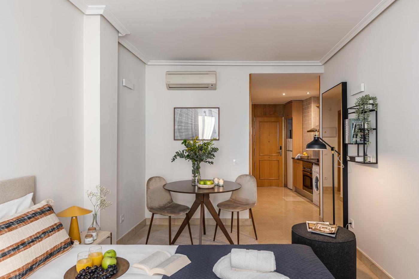 Apartamento de 1 dormitorio. Guests can make meals in the kitchen that is equipped with a refrigerator, kitchenware, an oven and a microwave. The studio provides air conditioning, a washing machine, as well as a private bathroom featuring a bath and a hairdryer. The unit offers 1 bed.