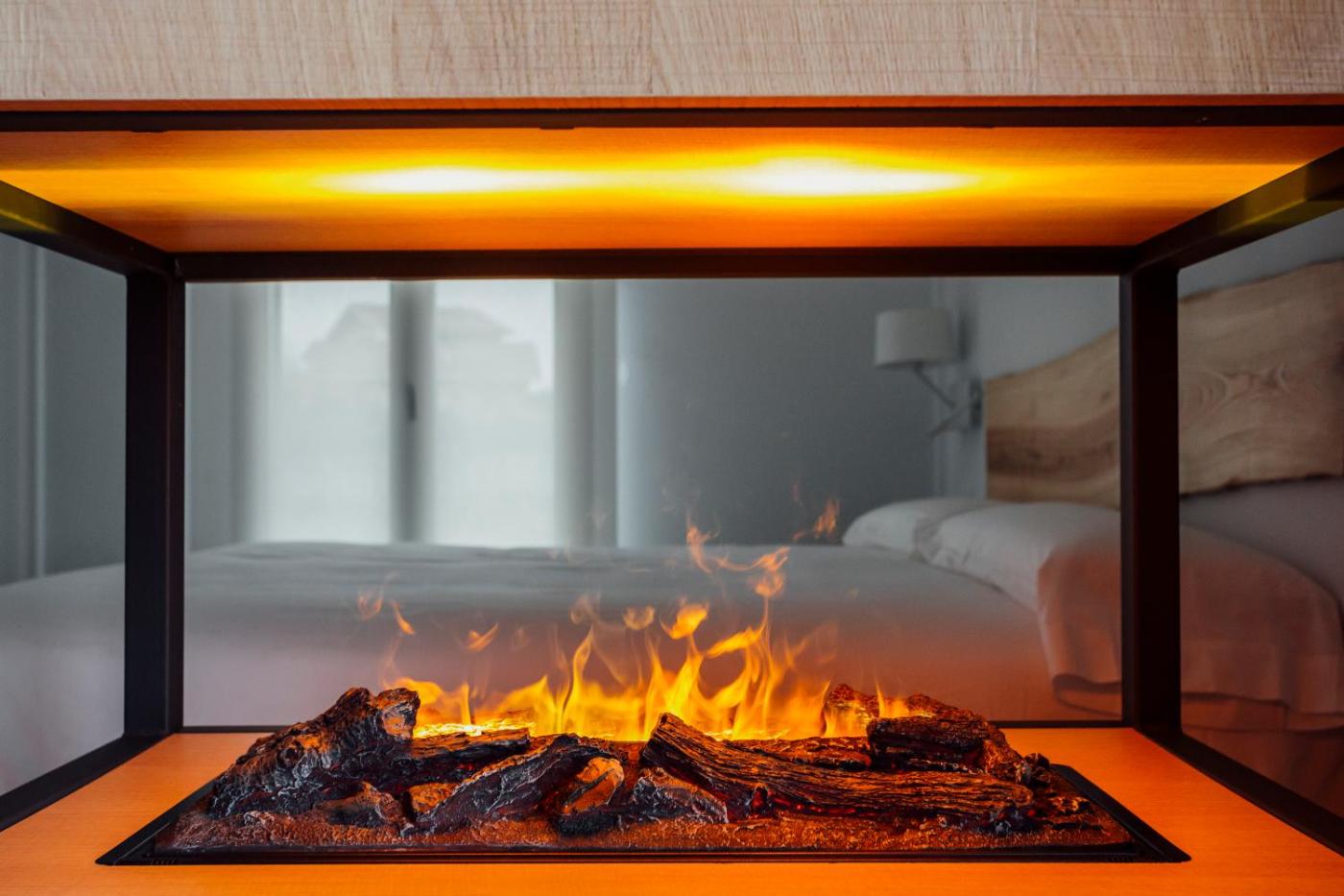 Habitación con cama extragrande y vistas al lago. The fireplace is the standout feature of this double room. Featuring free toiletries, this double room includes a private bathroom with a walk-in shower and a hairdryer. The air-conditioned double room features a flat-screen TV, soundproof walls, executive lounge access, a seating area as well as lake views. The unit has 1 bed.
