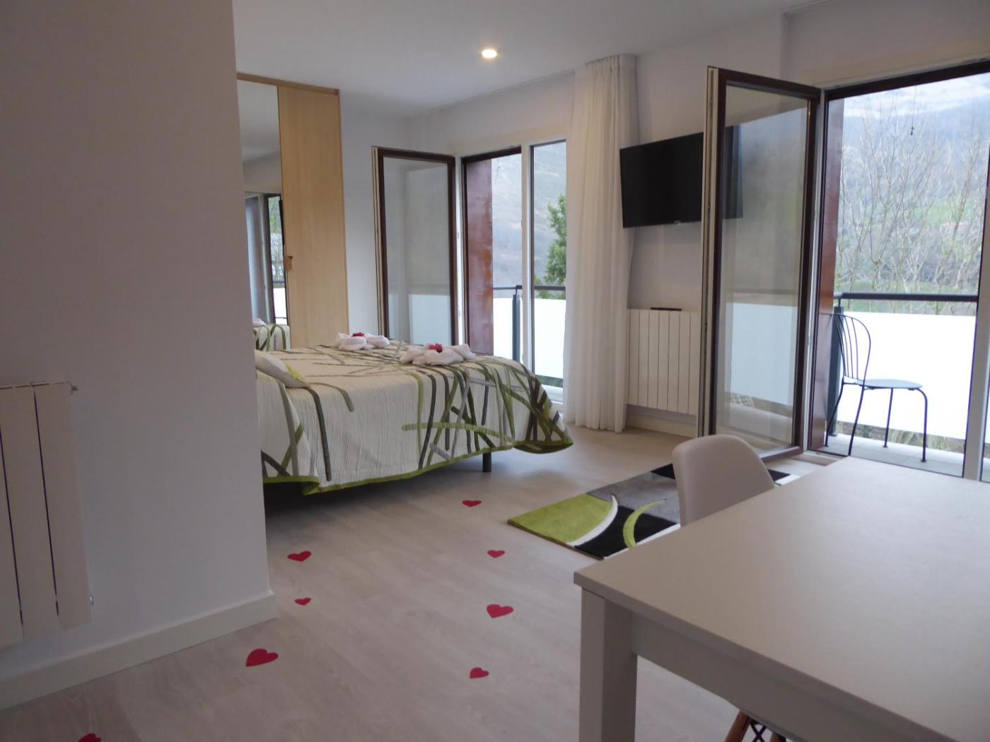 Habitación Doble con balcón (2 adultos + 1 niño). Guests will have a special experience as this double room offers a hot tub and a spa bath. In the well-equipped kitchen, guests will find a stovetop, a refrigerator, kitchenware and a microwave. The spacious double room features a washing machine, soundproof walls, a terrace with mountain views as well as a private bathroom boasting a walk-in shower. The unit has 1 bed. ;