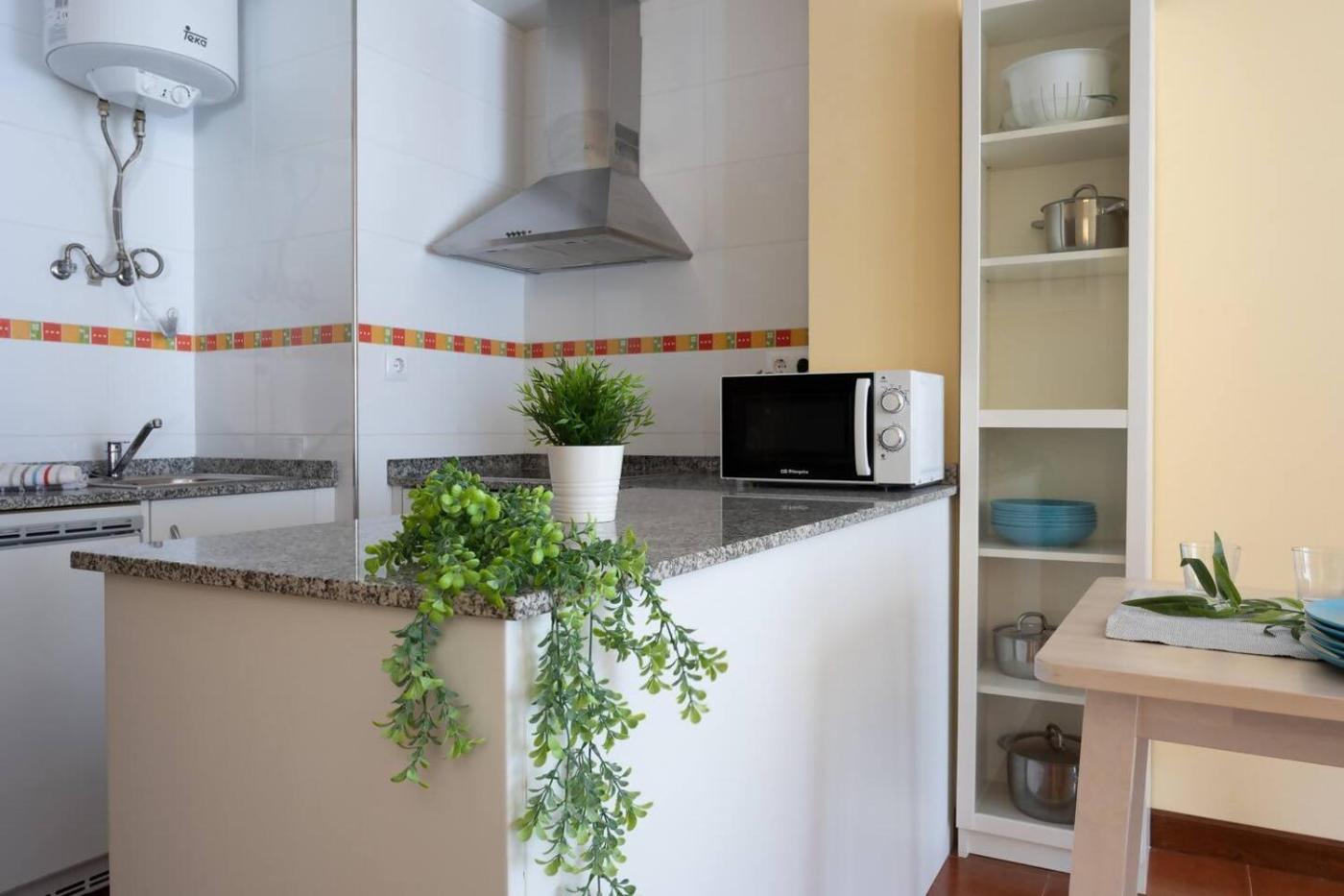 Habitación Doble. The spacious double room features a washing machine and a coffee machine, as well as a private bathroom boasting a bath. Guests can make meals in the kitchen that has a refrigerator, kitchenware, an oven and a microwave. Featuring a balcony, this double room also provides a wardrobe, tumble dryer and a TV.